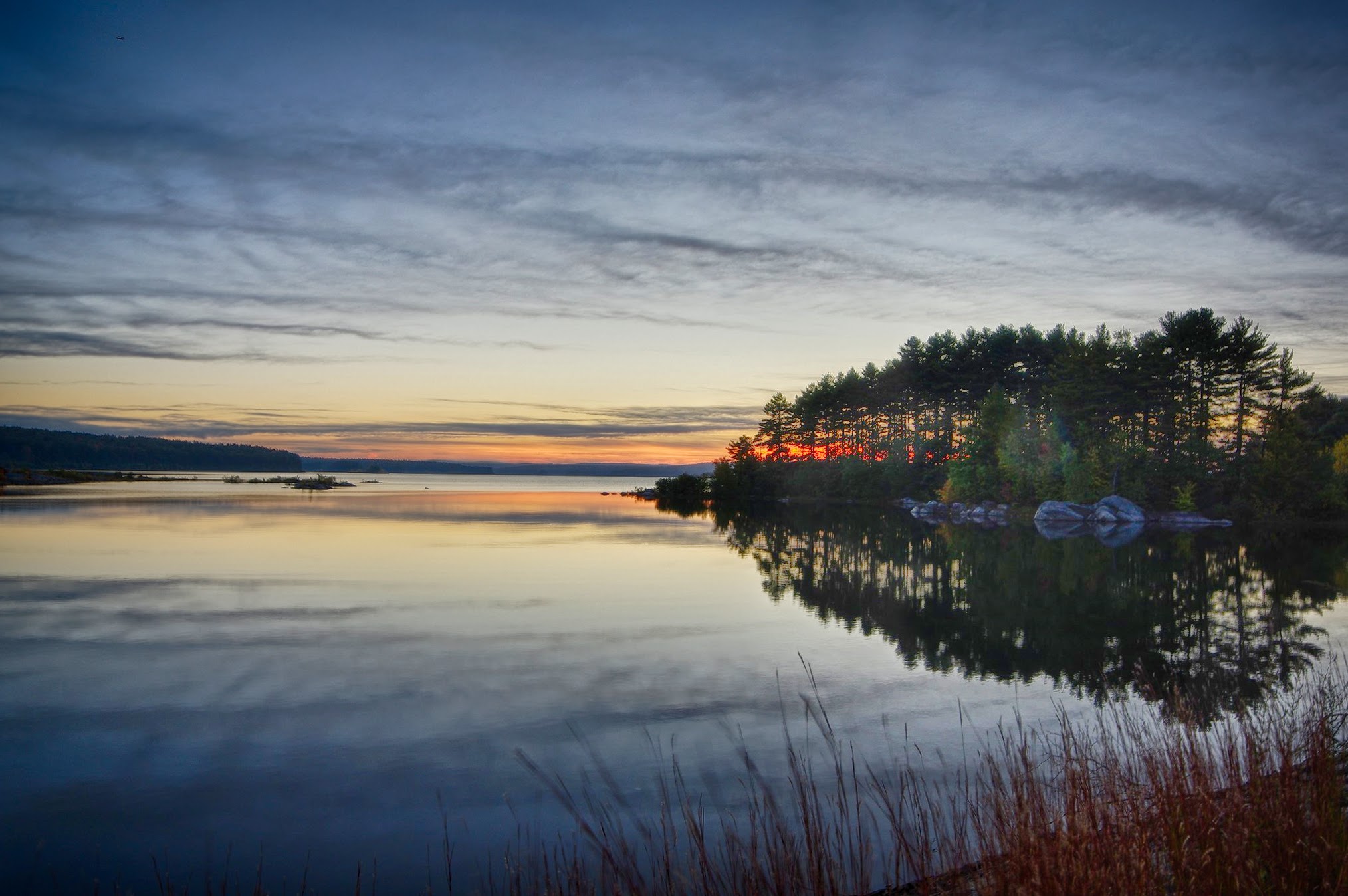 A log fire on a cool fall evening.